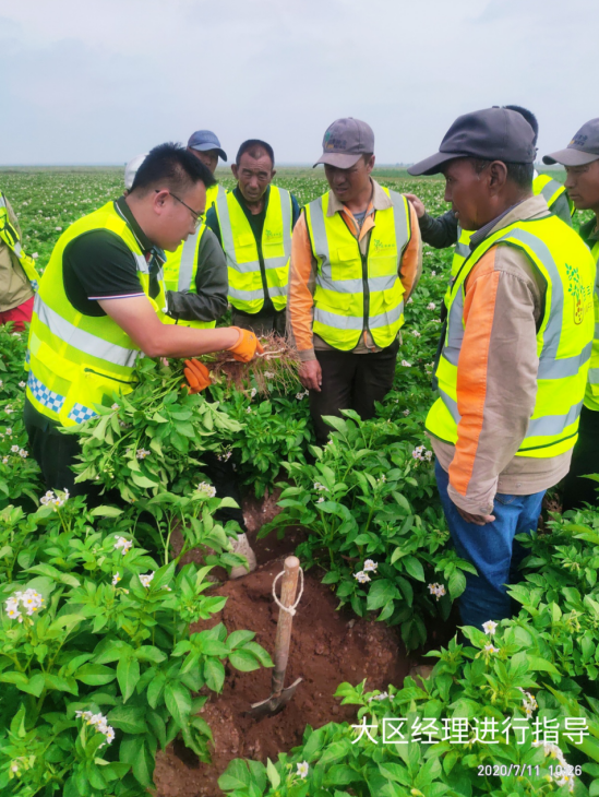 (通訊員 宋江江)2020年7月11日,民豐種業(yè)杭錦旗農(nóng)場組織開展內(nèi)部觀摩交流活動?;顒佑纱髤^(qū)經(jīng)理、農(nóng)藝師、管理員、基地經(jīng)理、機(jī)手等13人參加,在大區(qū)經(jīng)理門大偉的帶領(lǐng)下大家對各地塊馬鈴薯問題進(jìn)行的探討、研究,針對各基地問題做到早發(fā)現(xiàn),早溝通,早預(yù)防,就重大問題進(jìn)行立項(xiàng)研討并提出改進(jìn)方案及措施。同時(shí),對管理成就突出的地塊進(jìn)行現(xiàn)場學(xué)習(xí),共享田間管理方面、經(jīng)驗(yàn)及做法。