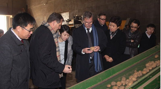 2013年11月22日,由荷蘭挪德斯波特市市長范德韋夫、社會發(fā)展部主任斯特克里、弗萊福蘭省政府發(fā)展局副局長潘歐恩、荷蘭農(nóng)業(yè)與食品技術(shù)中心商務(wù)拓展經(jīng)理彰桐組成的馬鈴薯產(chǎn)業(yè)考察團(tuán)在烏蘭察布市市長陶淑菊、副市長趙錦等人的陪同下對該市馬鈴薯產(chǎn)業(yè)發(fā)展情況進(jìn)行參觀考察。